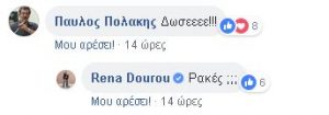 Σημειώνεται πως ένας από εκείνους που σχολίασαν την ανάρτηση της κ. Δούρου, ήταν και ο αναπληρωτής υπουργός Υγείας, Παύλος Πολάκης, γράφοντας: «Δώσεεεε!!!».