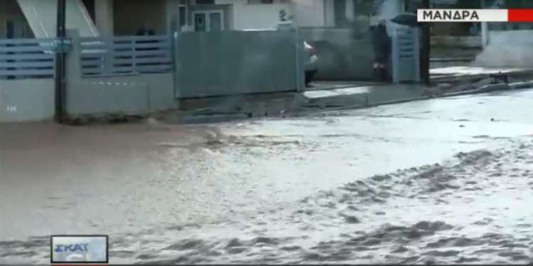 Σε ποτάμια μετετράπησαν ξανά οι δρόμοι της Μάνδρας από την έντονη βροχόπτωση, ξυπνώντας μνήμες από την τραγωδία του περασμένου Φθινοπώρου.